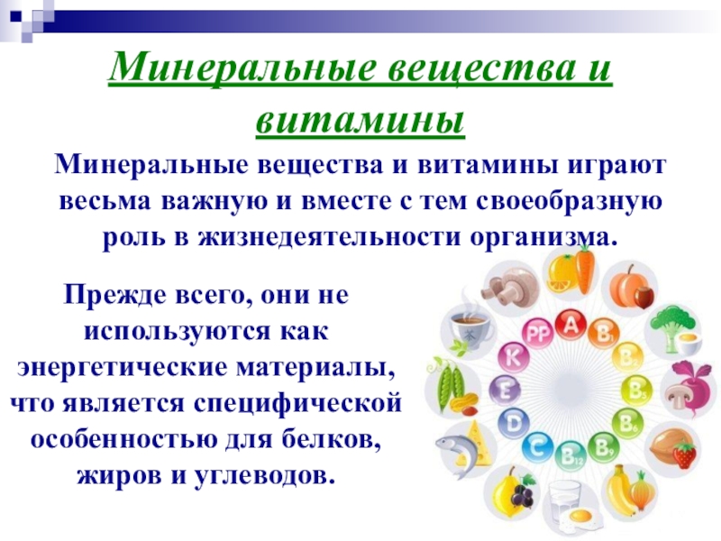 Минеральные вещества и витамины играют весьма важную и вместе с тем своеобразную роль в жизнедеятельности организма.