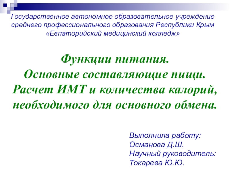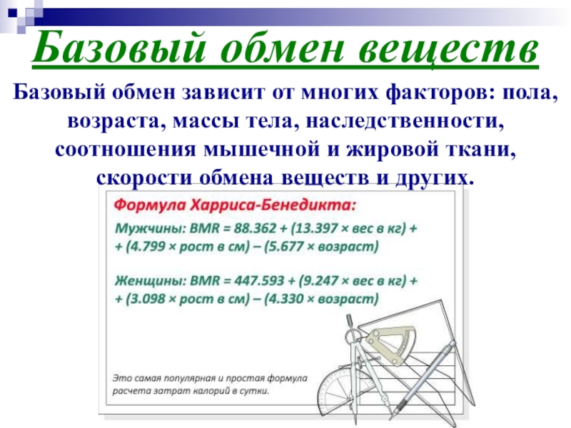 Расчет ИМТ и количества калорий, необходимого для основного обмена.