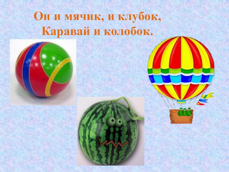 Он и мячик, и клубок, Каравай и колобок.