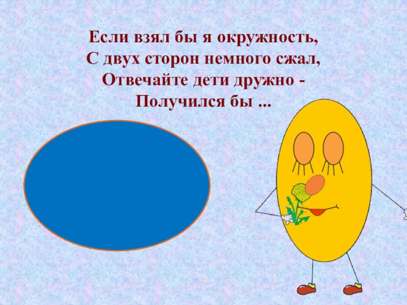 Если взял бы я окружность, С двух сторон немного сжал, Отвечайте дети дружно - Получился бы ...