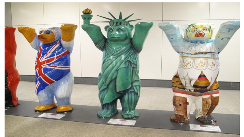 Яркий символ — берлинский мишка.Выставка под открытым небом -United Buddy Bears (содружество медведей Бадди)