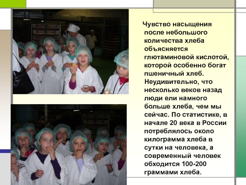 которой особенно богат пшеничный хлеб. Неудивительно, что несколько веков назад люди ели намного больше хлеба, чем мы сейчас. По статистике, в начале 20 века в России потреблялось около килограмма хлеба в сутки на человека, а современный человек обходится 100-200 граммами хлеба.