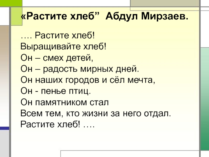 Слайд 27«Растите хлеб” Абдул Мирзаев.