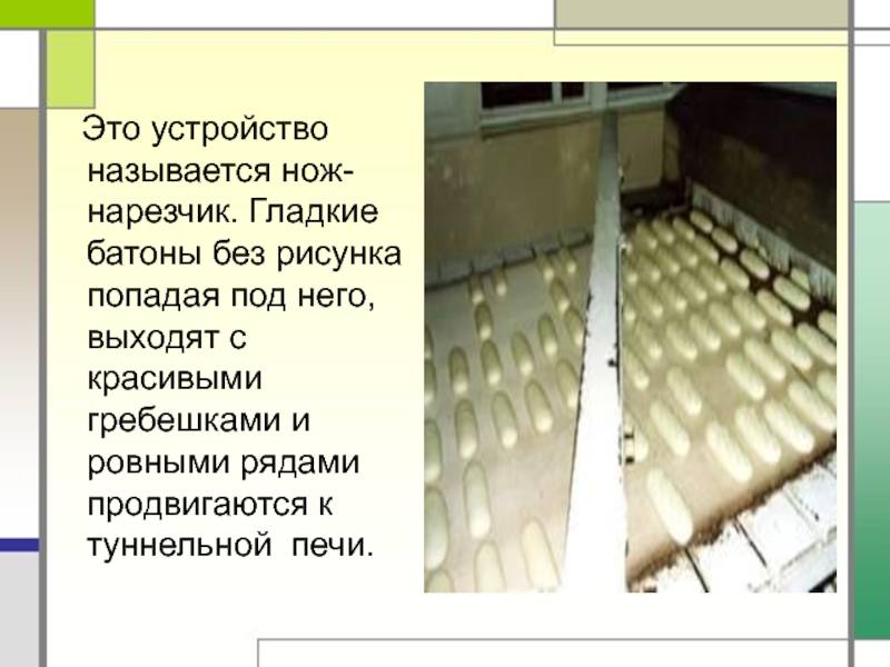 Слайд 19 Это устройство называется нож-нарезчик. Гладкие батоны без рисунка попадая