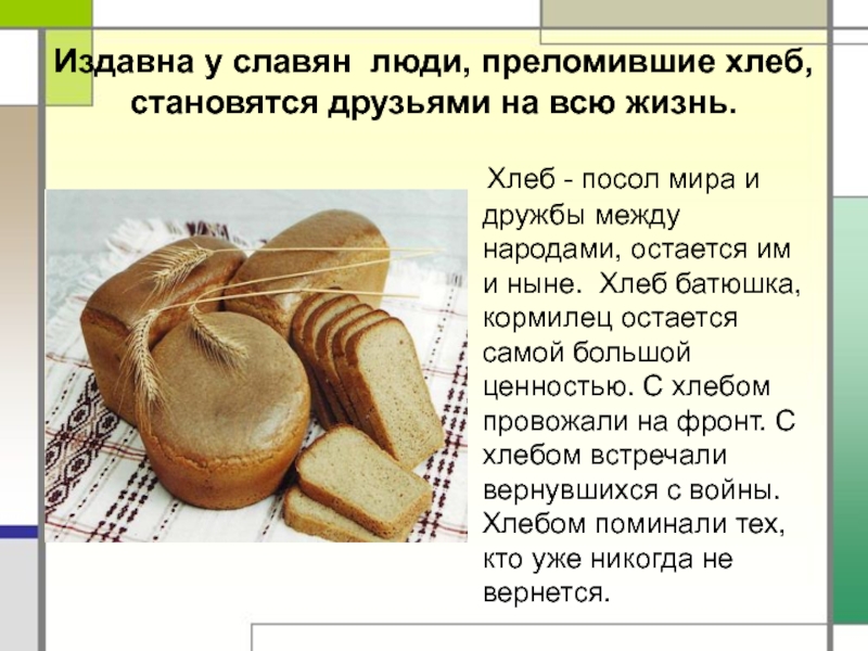 Слайд 3Издавна у славян люди, преломившие хлеб, становятся друзьями на всю жизнь.