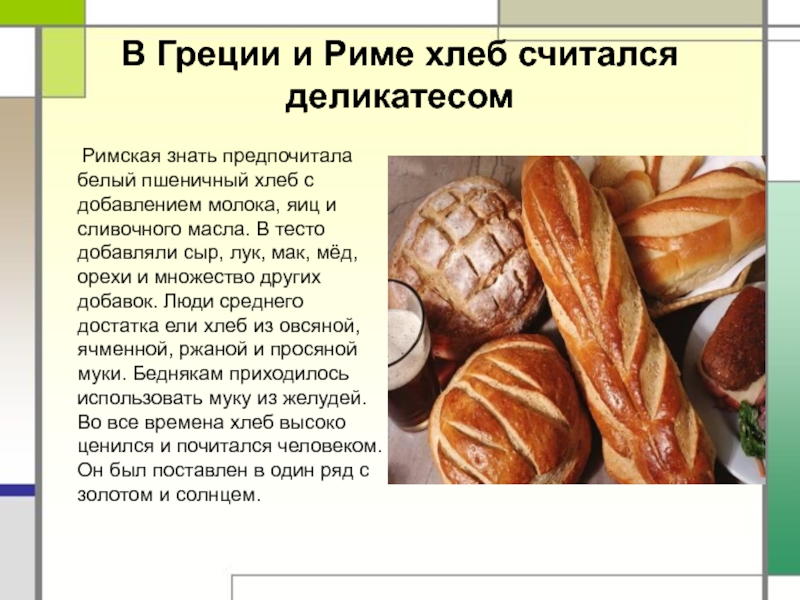 Слайд 5В Греции и Риме хлеб считался деликатесом