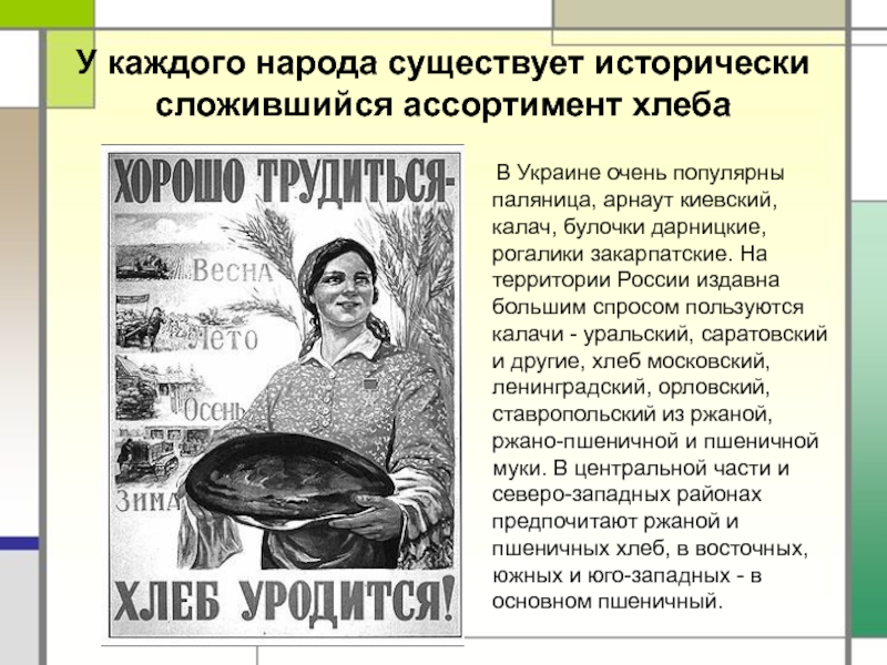 Слайд 7У каждого народа существует исторически сложившийся ассортимент хлеба