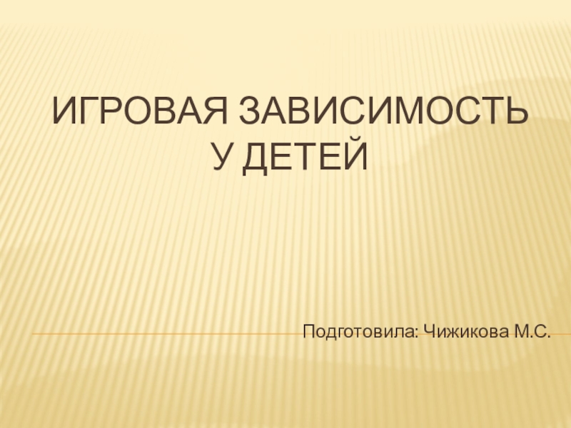Игровая зависимость  у детейПодготовила: Чижикова М.С.