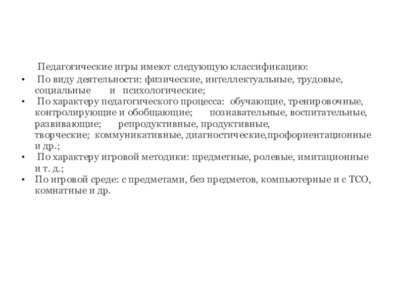 Слайд 4 Педагогические игры имеют следующую классификацию: