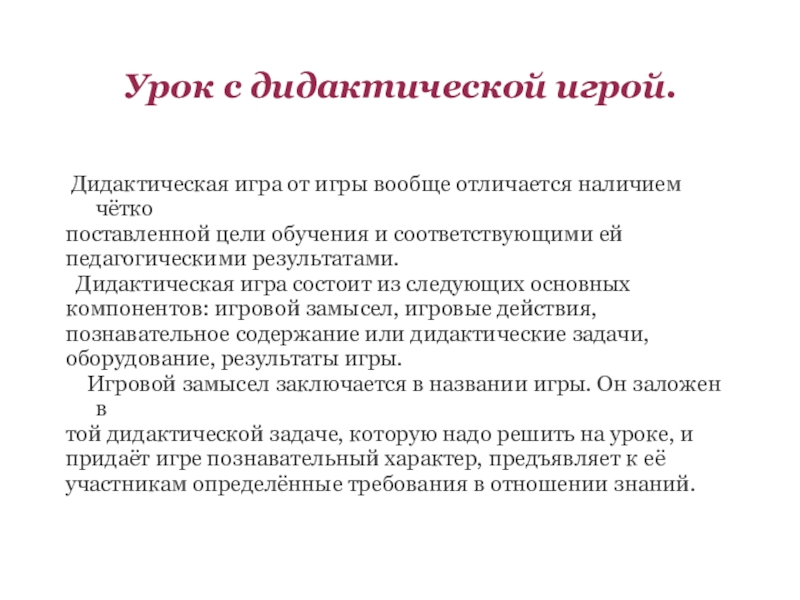 Игра не должна выпадать из общих целей урока, содействовать их реализации.