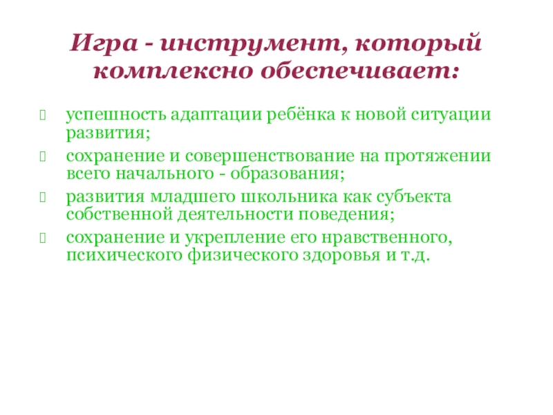 Слайд 8Игра - инструмент, который комплексно обеспечивает: