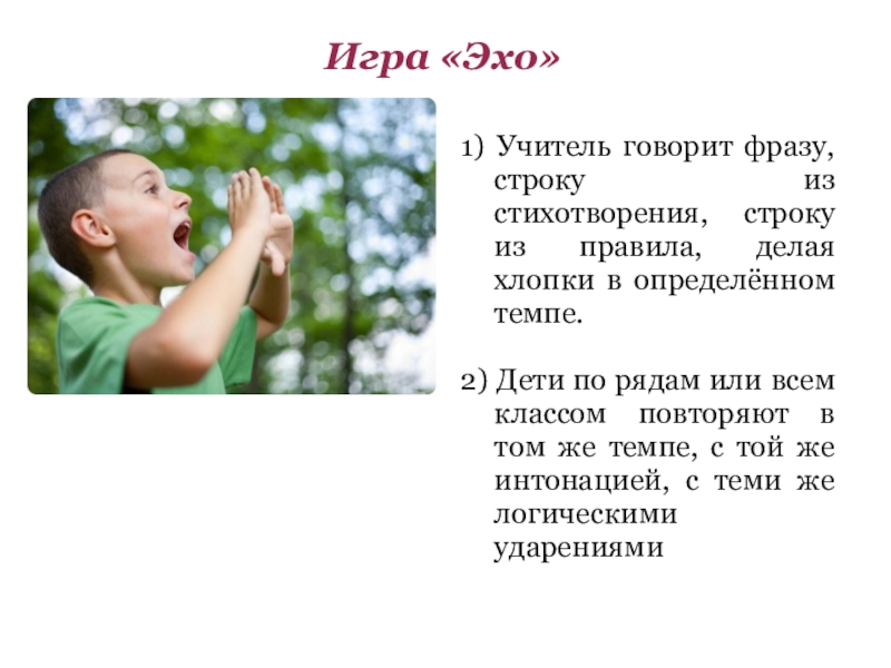 2) Дети по рядам или всем классом повторяют в том же темпе, с той же интонацией, с теми же логическими ударениями