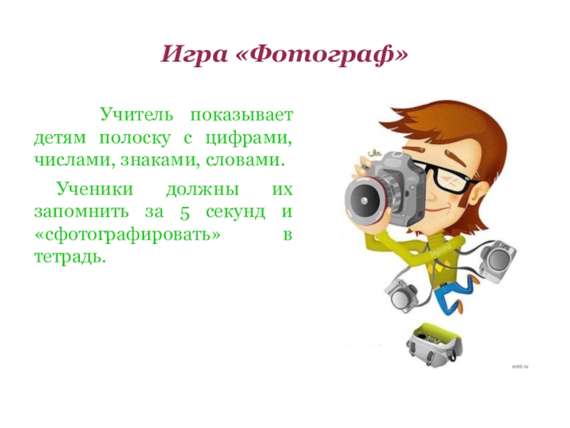 Ученики должны их запомнить за 5 секунд и «сфотографировать» в тетрадь.