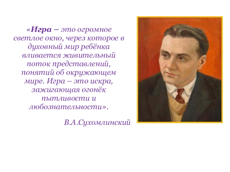 Слайд 2«Игра – это огромное светлое окно, через которое в духовный мир