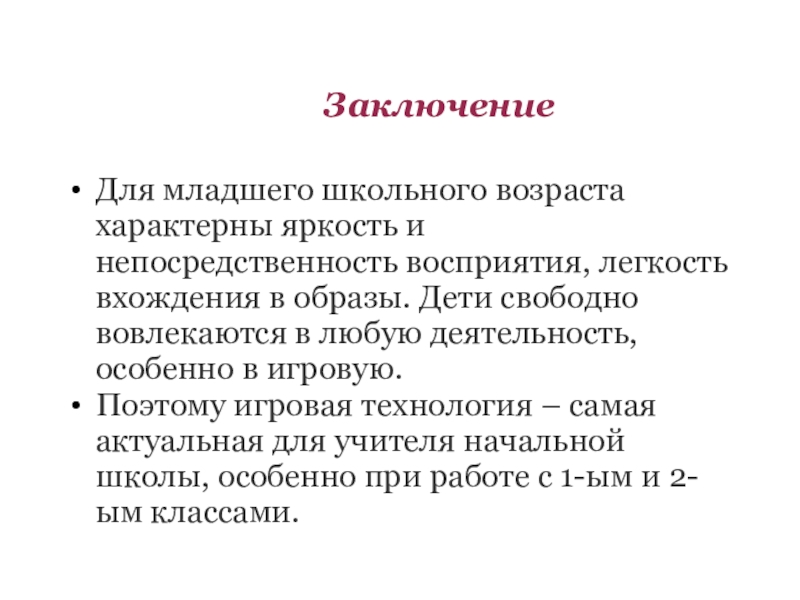 Поэтому игровая технология – самая актуальная для учителя начальной школы, особенно при работе с 1-ым и 2-ым классами.