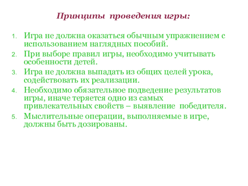 Игра не должна оказаться обычным упражнением с использованием наглядных