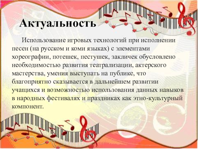 Использование игровых технологий при исполнении песен (на русском и коми языках)