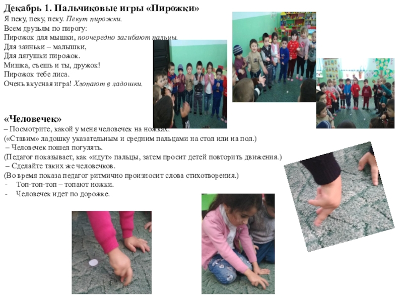 Слайд 14Декабрь 1. Пальчиковые игры «Пирожки»
