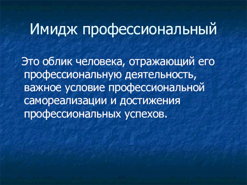 Имидж профессиональный Это облик человека, отражающий его профессиональную деятельность, важное условие профессиональной самореализации и достижения профессиональных успехов.