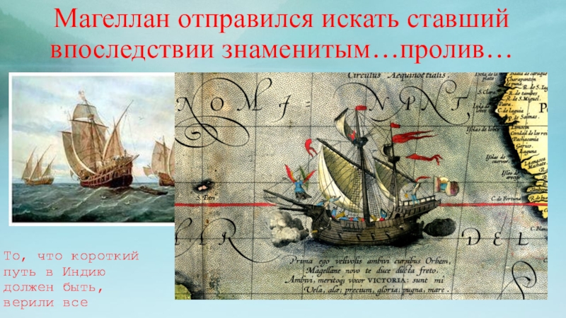 Магеллан отправился искать ставший впоследствии знаменитым…пролив… То, что короткий путь в Индиюдолжен быть, верили все