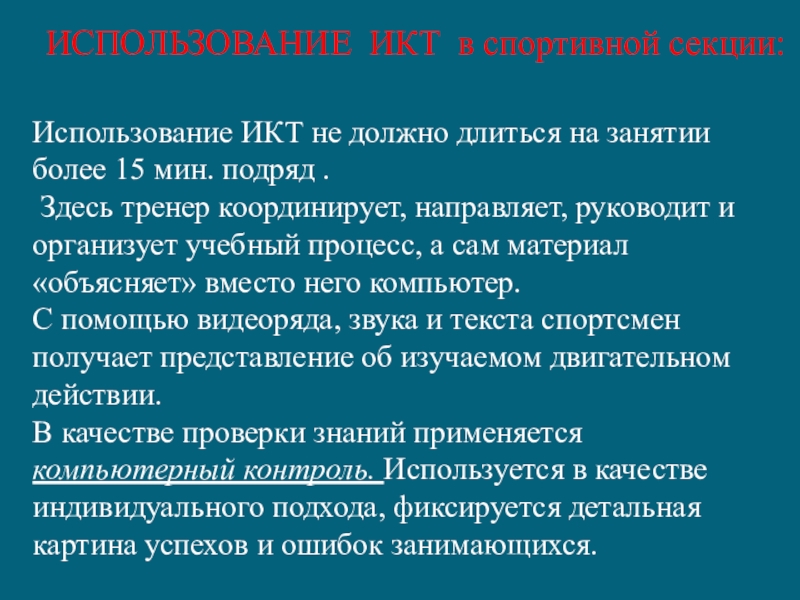 ИСПОЛЬЗОВАНИЕ ИКТ в спортивной секции: