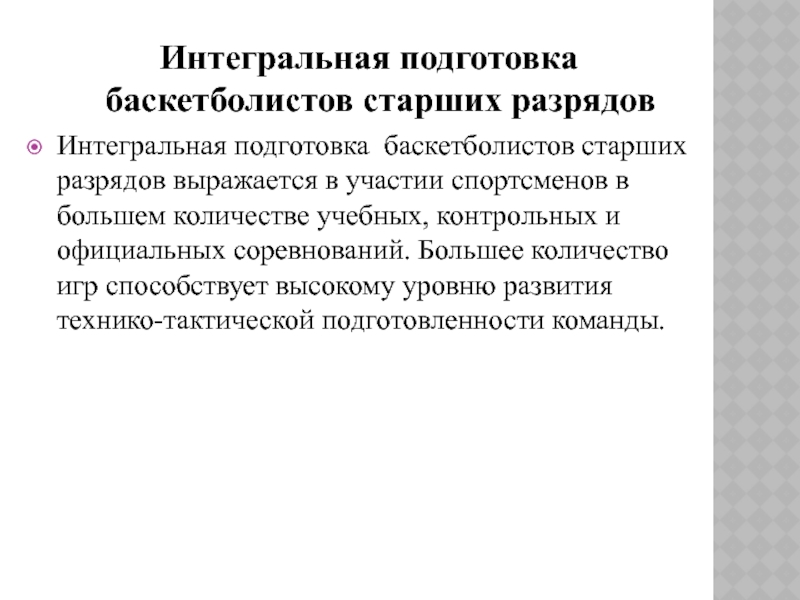 Слайд 8Интегральная подготовка баскетболистов старших разрядов