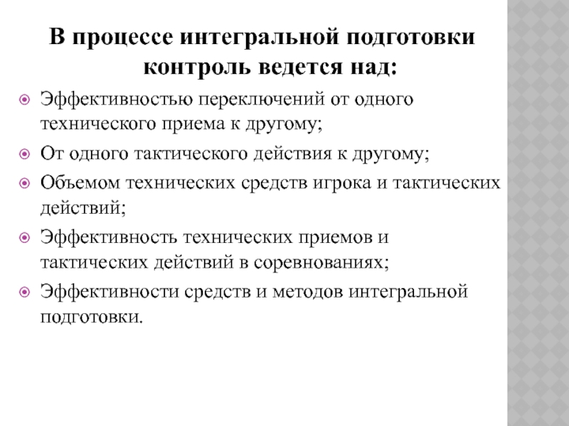 Слайд 6В процессе интегральной подготовки контроль ведется над:
