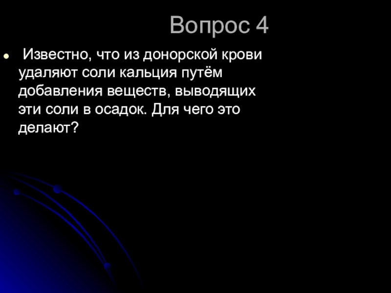 в результате удаления кальция донорская кровь не свёртывается и её можно хранить долгое время.