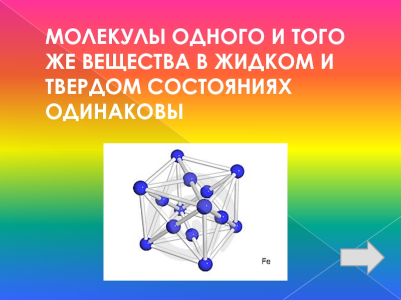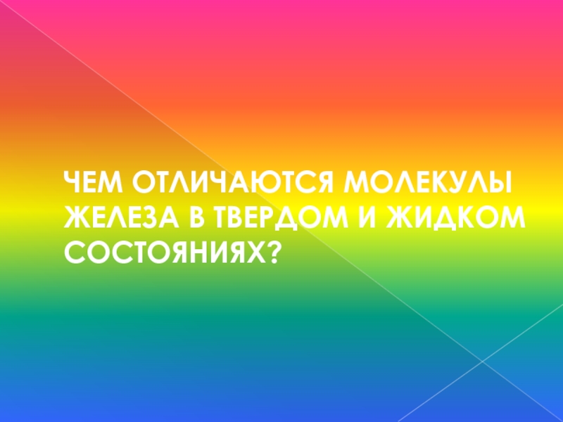 Слайд 30ЧЕМ ОТЛИЧАЮТСЯ МОЛЕКУЛЫ ЖЕЛЕЗА В ТВЕРДОМ И ЖИДКОМ СОСТОЯНИЯХ?