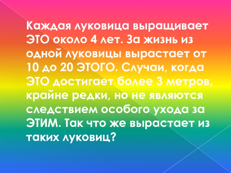 Слайд 40Каждая луковица выращивает ЭТО около 4 лет. За жизнь из одной