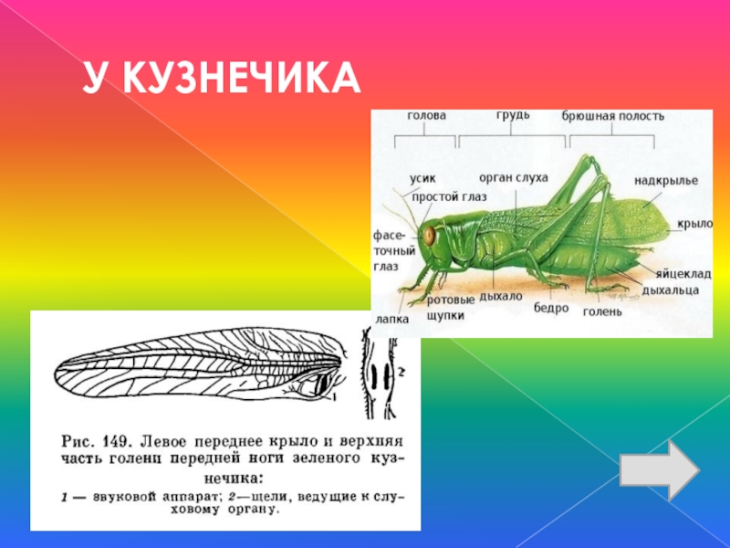 Слайд 23У КУЗНЕЧИКА