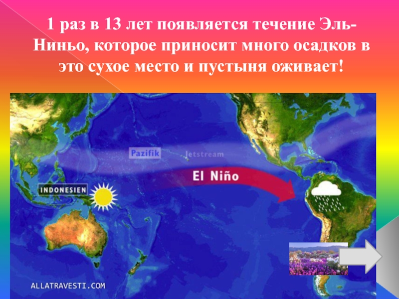 Слайд 171 раз в 13 лет появляется течение Эль- Ниньо, которое приносит