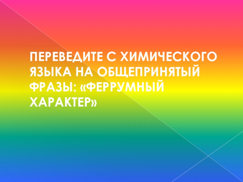 Слайд 26ПЕРЕВЕДИТЕ С ХИМИЧЕСКОГО ЯЗЫКА НА ОБЩЕПРИНЯТЫЙ ФРАЗЫ: «ФЕРРУМНЫЙ ХАРАКТЕР»