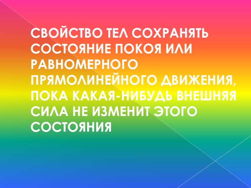 Слайд 32Свойство тел сохранять состояние покоя или равномерного прямолинейного движения, пока какая-нибудь