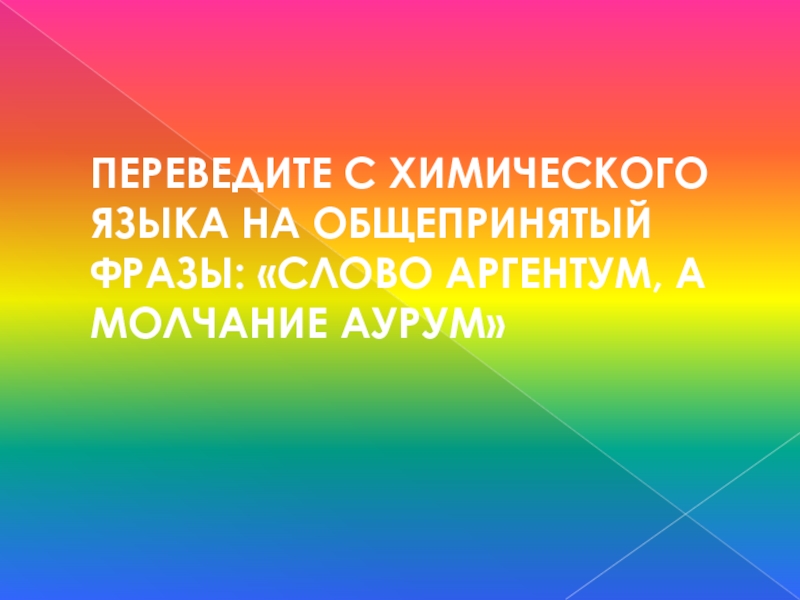 Слайд 28ПЕРЕВЕДИТЕ С ХИМИЧЕСКОГО ЯЗЫКА НА ОБЩЕПРИНЯТЫЙ ФРАЗЫ: «СЛОВО АРГЕНТУМ, А МОЛЧАНИЕ