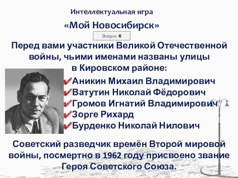 Советский разведчик времён Второй мировой войны, посмертно в 1962 году присвоено звание Героя Советского Союза.