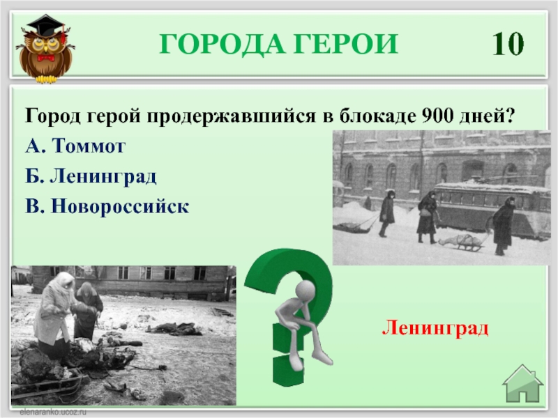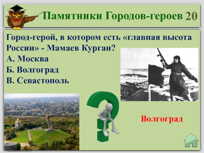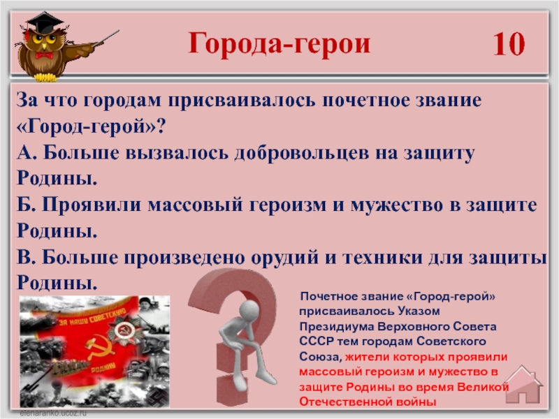 Почетное звание «Город-герой» присваивалось Указом Президиума Верховного Совета СССР тем городам Советского Союза, жители которых проявили массовый героизм и мужество в защите Родины во время Великой Отечественной войны