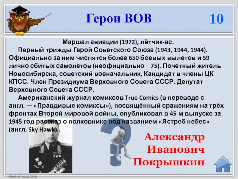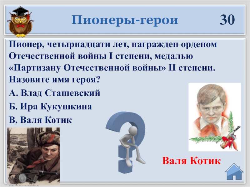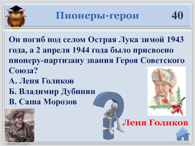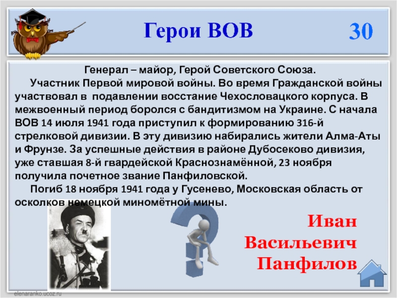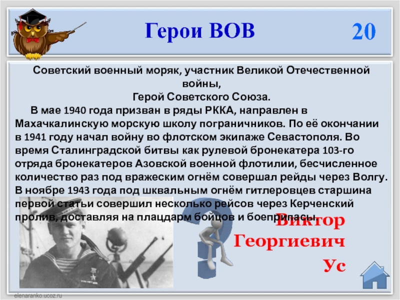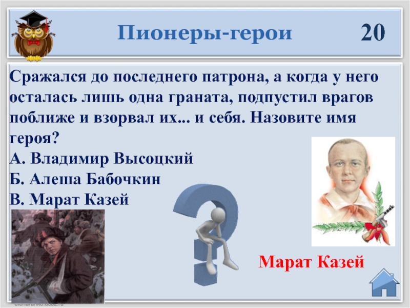 Сражался до последнего патрона, а когда у него осталась лишь одна граната, подпустил врагов поближе и взорвал их... и себя. Назовите имя героя?