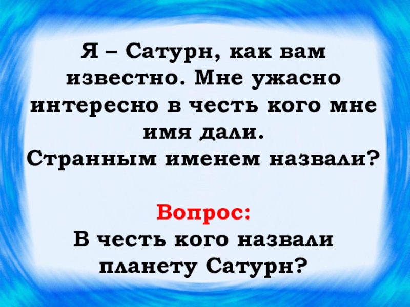 кого мне имя дали. Странным именем назвали? Вопрос: В честь кого назвали планету Сатурн?