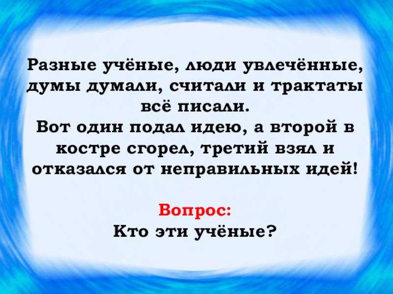 Слайд 14Разные учёные, люди увлечённые, думы думали, считали и трактаты всё писали.