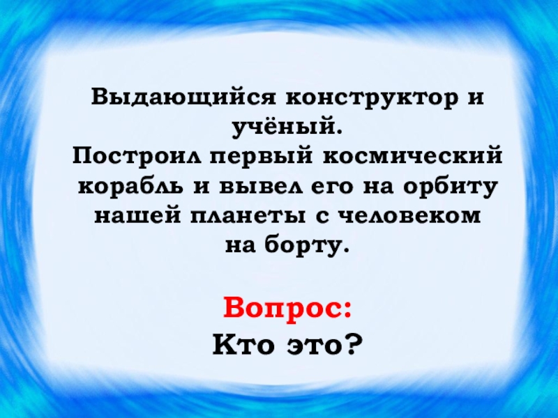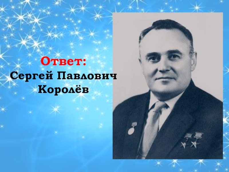 Выдающийся конструктор и учёный. Построил первый космический корабль и вывел его на орбиту нашей планеты с человеком