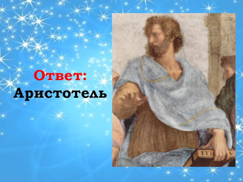 и смотрит она, как в сказочном танце, плывут постепенно по кругу планеты, Солнце, Луна. Вопрос: - Кто из античных философов предполагал, что Солнце и планеты вращаются вокруг Земли?