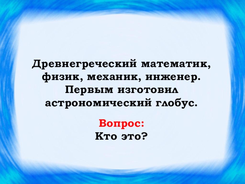 Древнегреческий математик, физик, механик, инженер. Первым изготовил