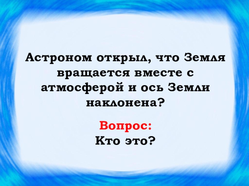 Слайд 12Астроном открыл, что Земля вращается вместе с атмосферой и ось Земли