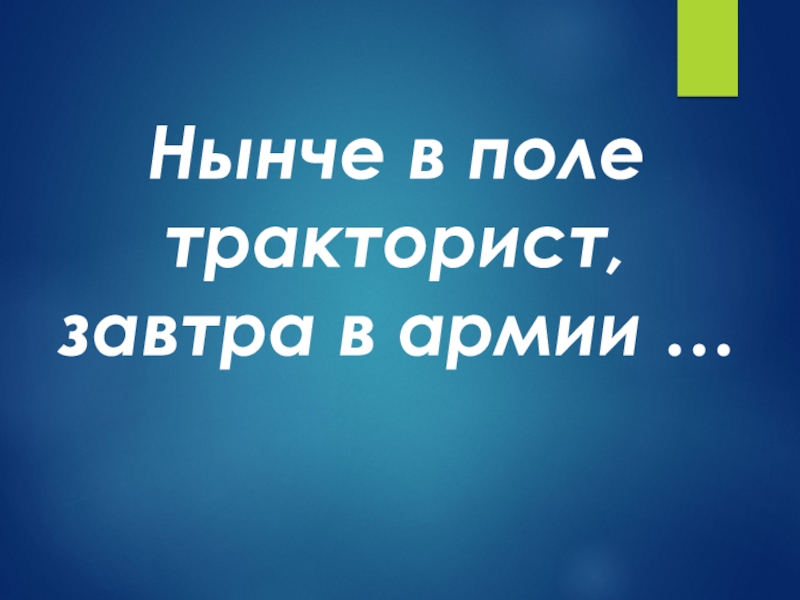 Слайд 5Нынче в поле тракторист, завтра в армии …