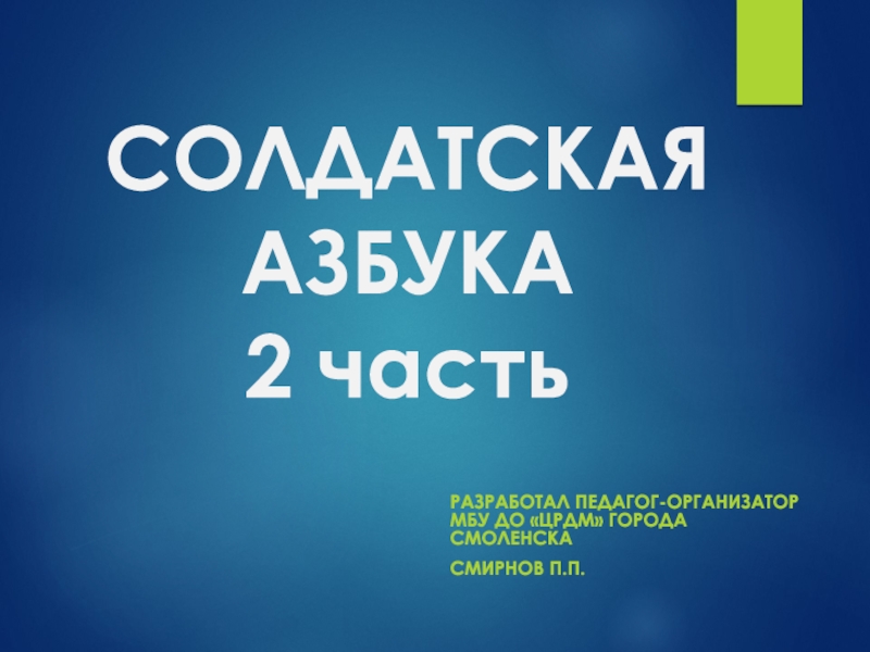 СОЛДАТСКАЯ АЗБУКА 2 частьРазработал педагог-организатор МБУ ДО «ЦРДМ» города смоленскаСмирнов П.П.