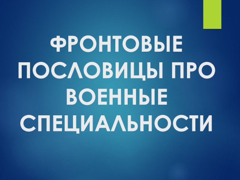 Слайд 2ФРОНТОВЫЕ ПОСЛОВИЦЫ ПРО ВОЕННЫЕ СПЕЦИАЛЬНОСТИ