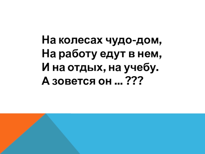 На колесах чудо-дом,На работу едут в нем,И на отдых, на учебу.А зовется он ... ???