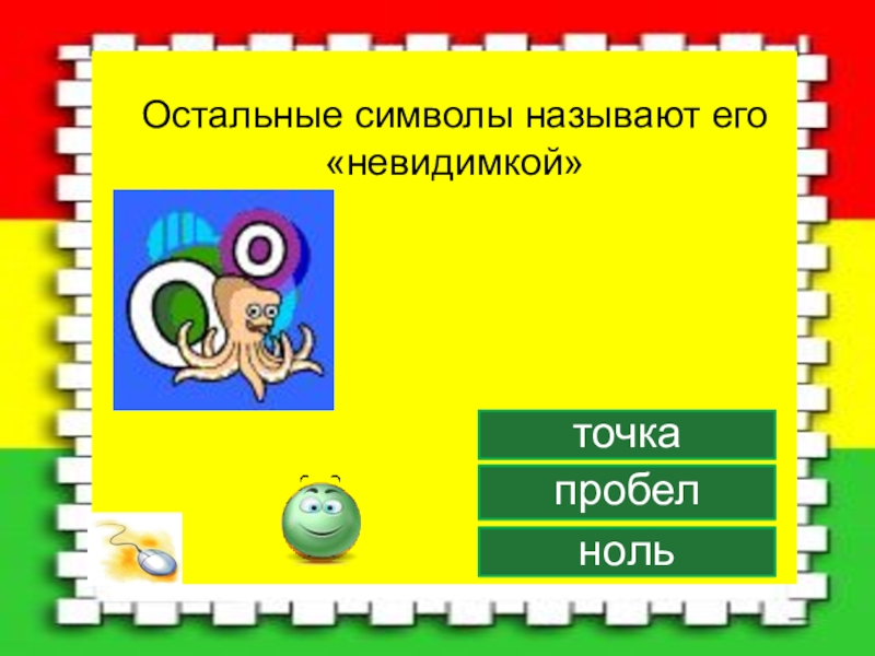 Слайд 16Остальные символы называют его «невидимкой»
