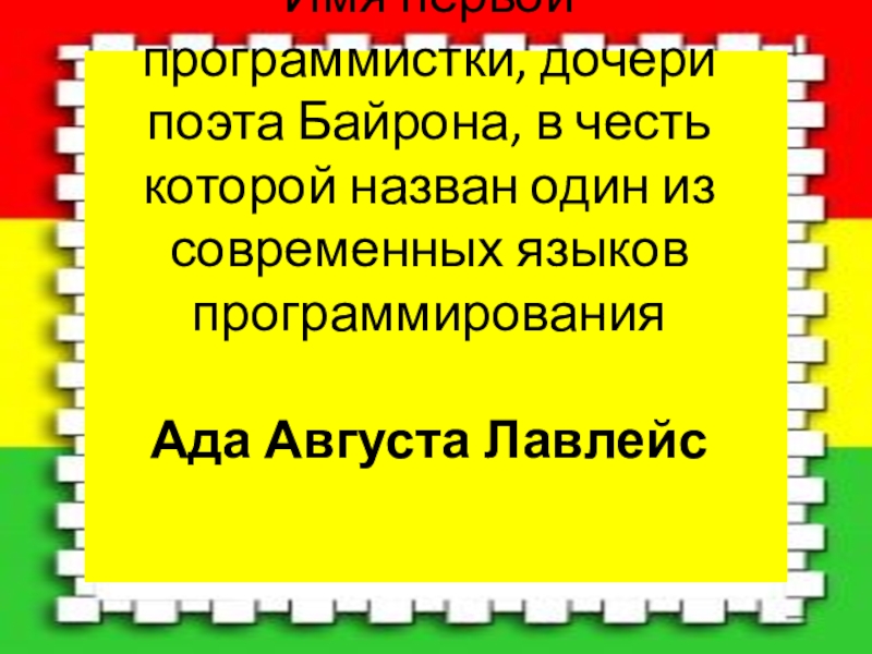 Имя первой программистки, дочери поэта Байрона, в честь которой назван один из современных языков программирования